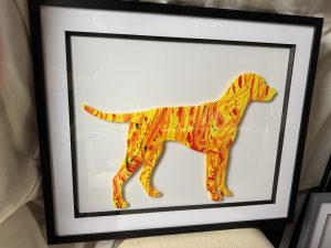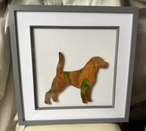Framed original acrylic pour on to acrylic.